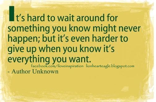 It’s hard to wait around for something you know might never happen;but its even harder to give up when you know it’s everything you want.Patience is everything